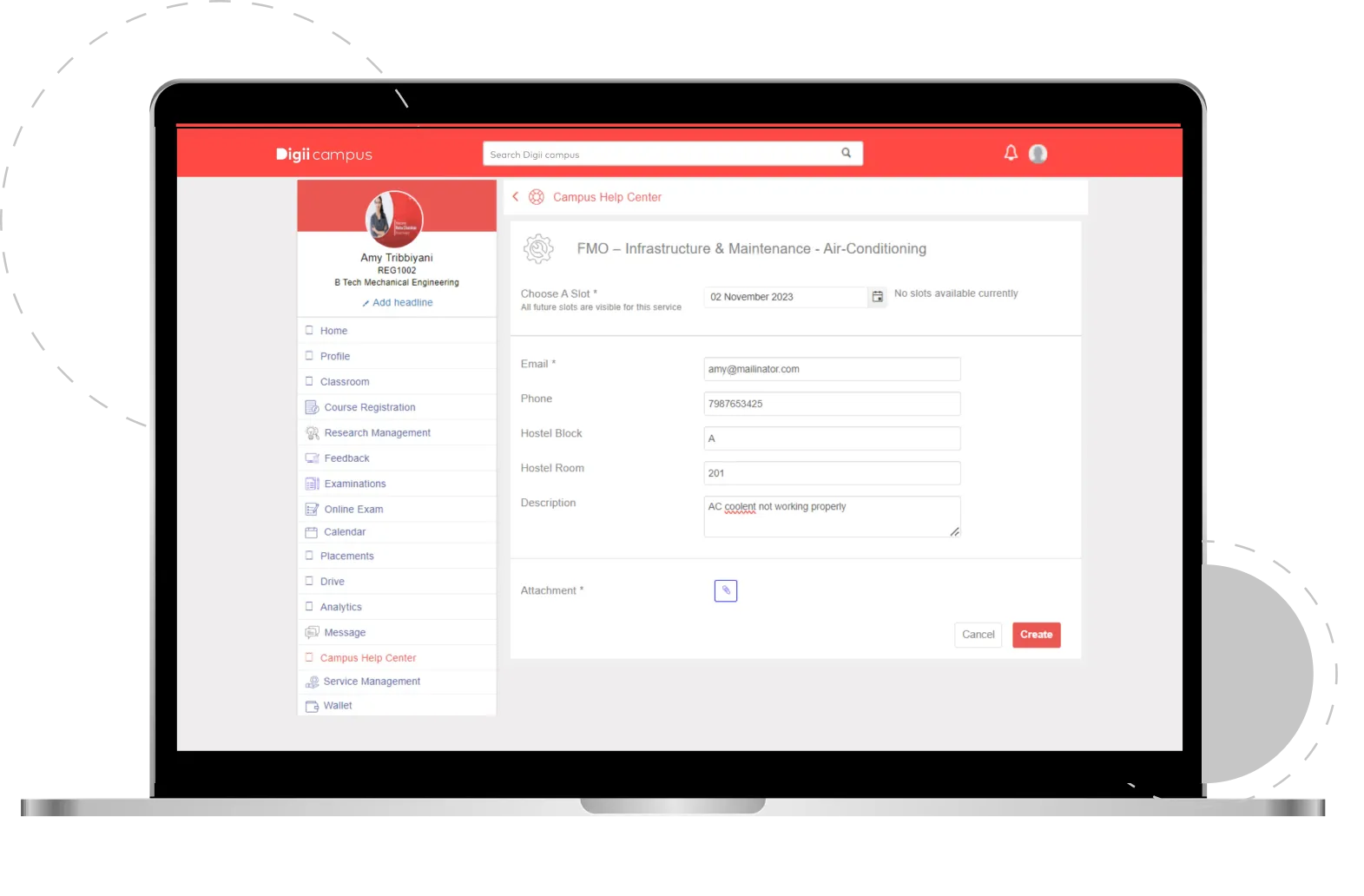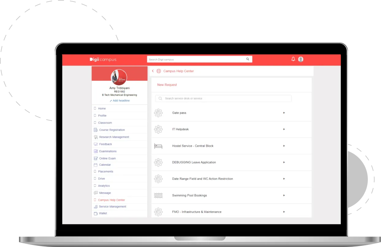 Digiicampus’ Help Center is designed to manage all grievances in compliance with all UGC and AICTE guidelines to automate 1000+ campus workflows, manage and track students’ requests for different services, and much more.
