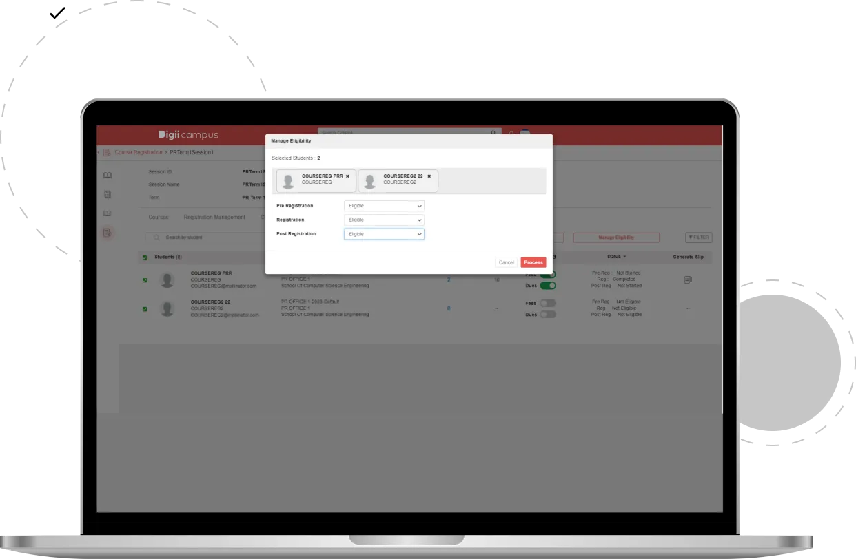 Manage student registration smartly with our efficient course registration system to minimize any errors while configuring the course details for a student.
