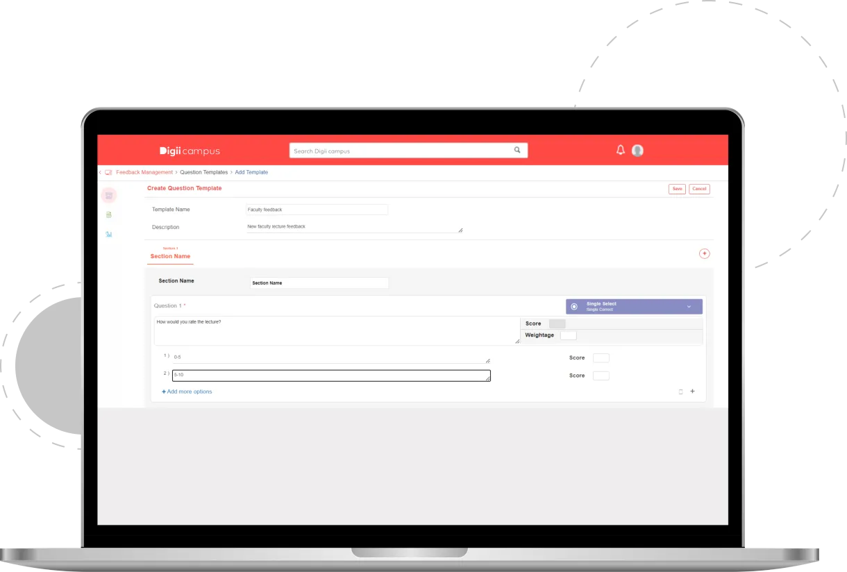 Digiicampus empowers educators to automate their feedback processes with the ability to create customizable question templates.