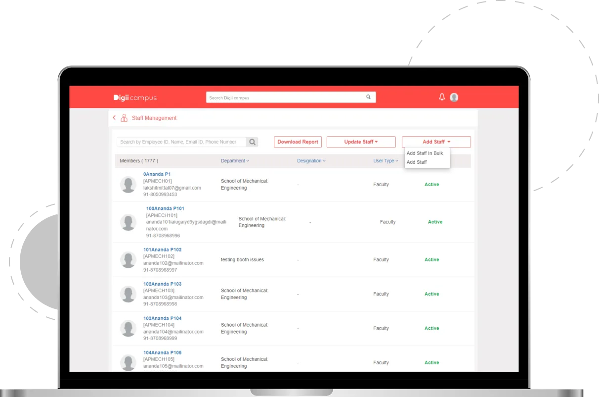 Digiicampus’ smart Staff Management System provides well-organized data to eliminate manual record keeping and smooth data monitoring