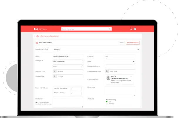 With the integration of the Infrastructure & Venue Booking module, you can effectively streamline the management of your campus infrastructure.