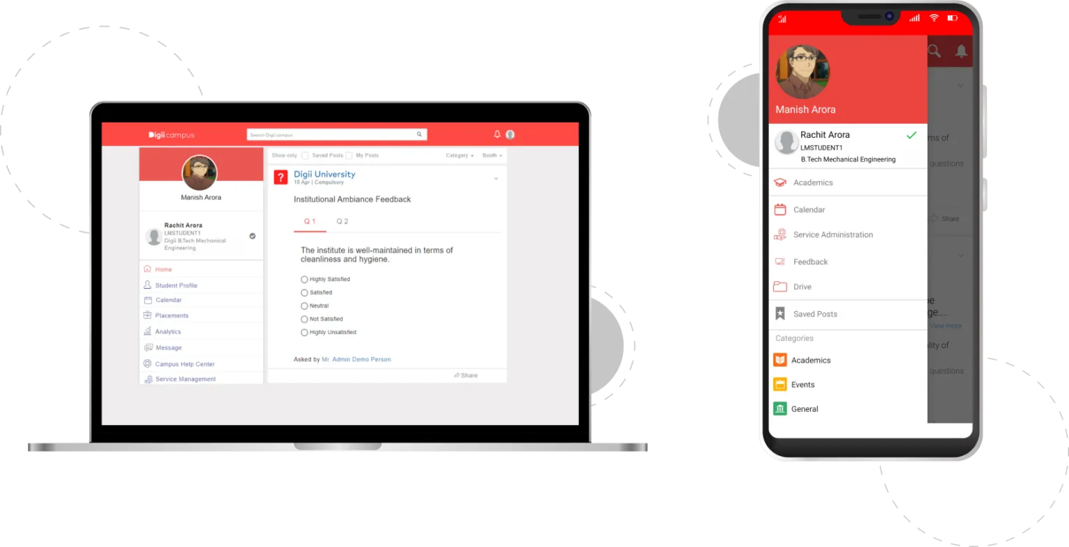 - Campus feed for all e-notices and updates on-campus activities or feedback